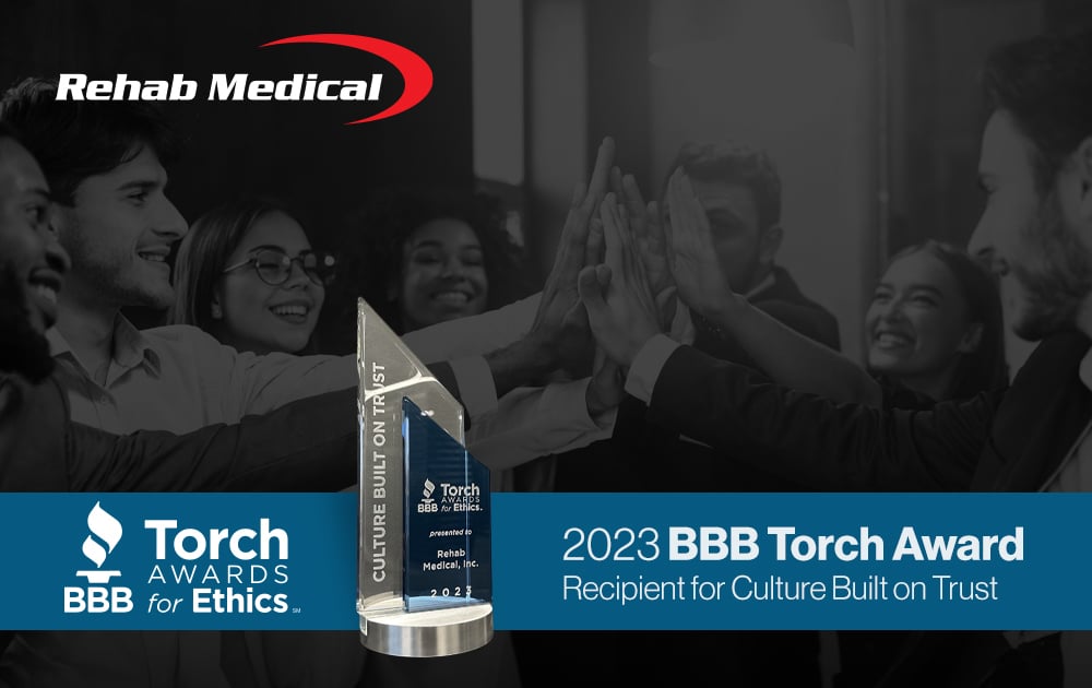| Rehab Medical Wins Better Business Bureau Torch AwardRecently Rehab Medical was named Better Business Bureau’s Torch Award winner for its Culture Build on Trust. The award acknowledges the company’s dedication to fostering an environment of purpose, empowering employees, and providing growth opportunities. Uncover more about this exciting award below! | | Read More | |