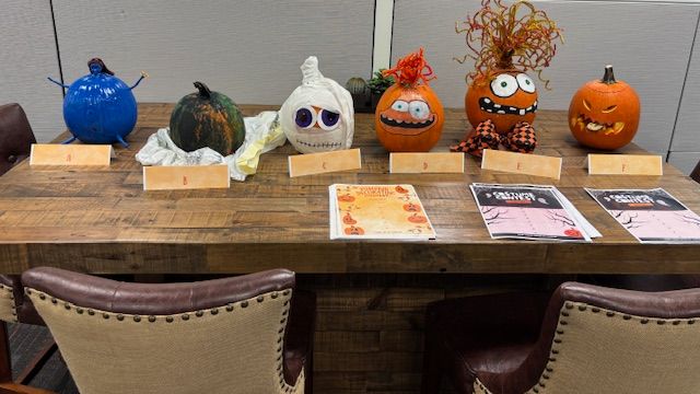 The pumpkins were nothing short of spectacular! Participants brought in their most imaginative and festive gourds to compete for the title of most creative pumpkin. Voting took place throughout the day, and when the final count was in, the winner was… Beth Hodge with her Anxiety Pumpkin from the Movie Inside Out! Incredible work and big thanks to everyone who shared their pumpkin masterpieces. |