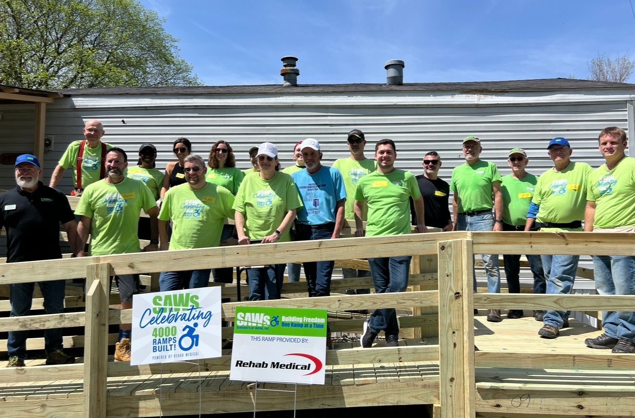 Rehab Medical has proudly partnered with Servants at Work (SAWs) to build custom wheelchair ramps so mobility users can safely access their local community. The Rehab Medical team is excited to announce they partnered with SAWs again to celebrate their 4000th ramp build! Nearly three years ago, they partnered with SAWs on its 3000th ramp build where a local Indiana woman was safely able to leave her home after a year of being confined, this solidified a lifetime partnership with SAWs.